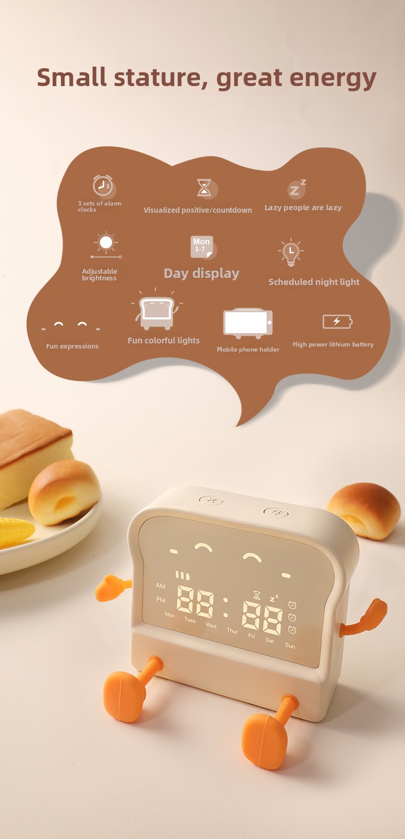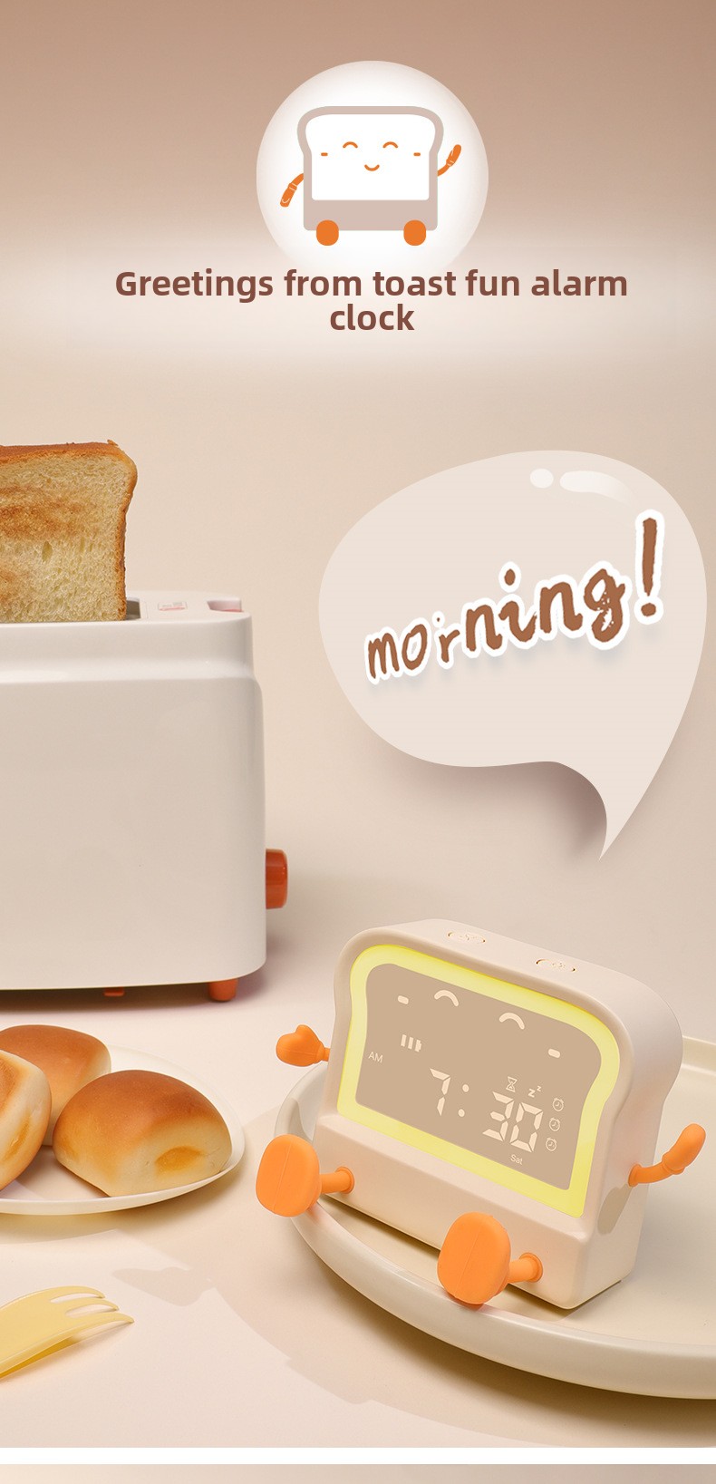 Child-Friendly: Cartoon-style toast appearance with soft night light, suitable for children.